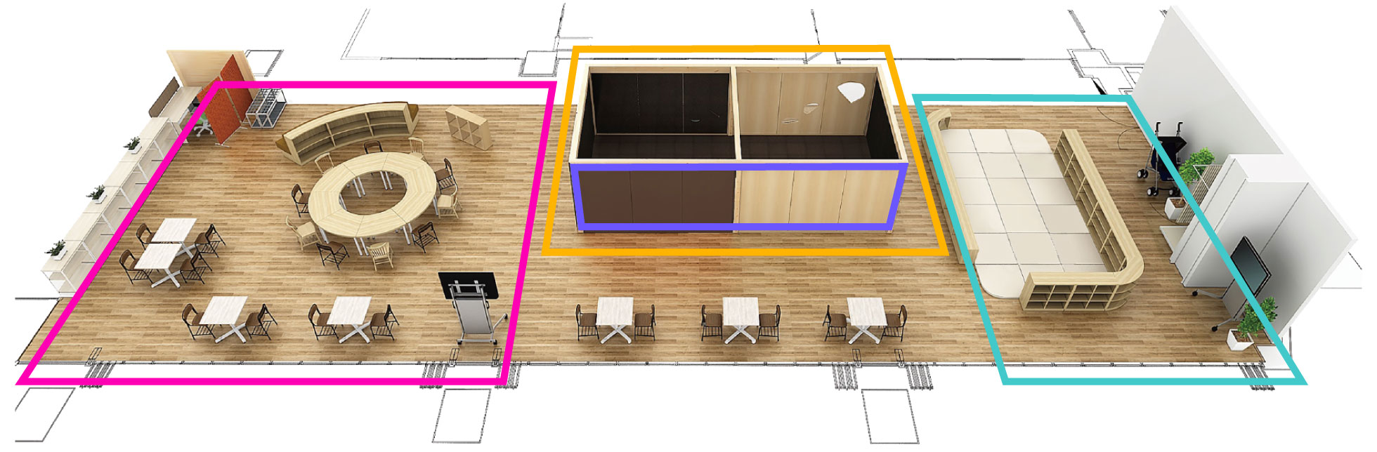 安心して過ごしながら、子どもたちが遊びや交流を通して自然に自らの世界を広げていける空間です。