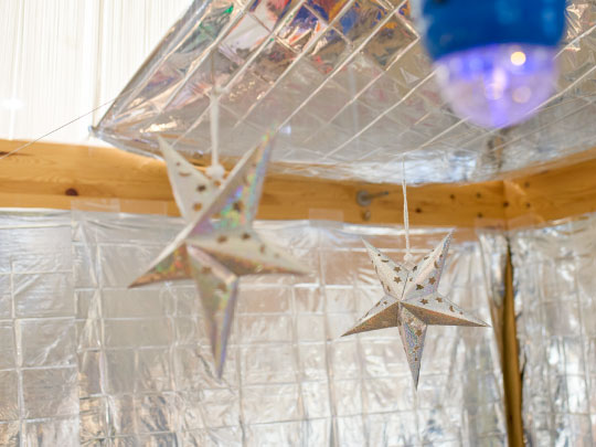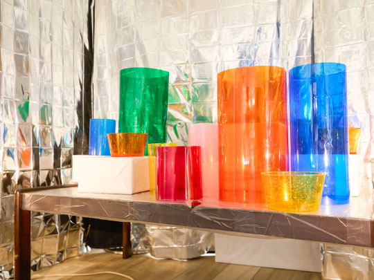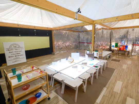 光るテーブルやプロジェクターなどを使った