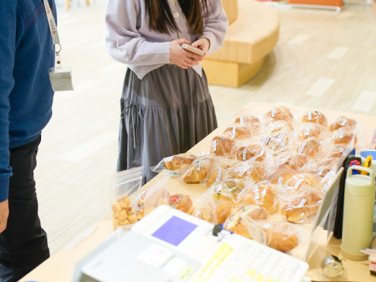障害者施設で作られたパンの販売や自動販売機が設置されています。液体ミルクや紙おむつを購入可能な自動販売機もあります。